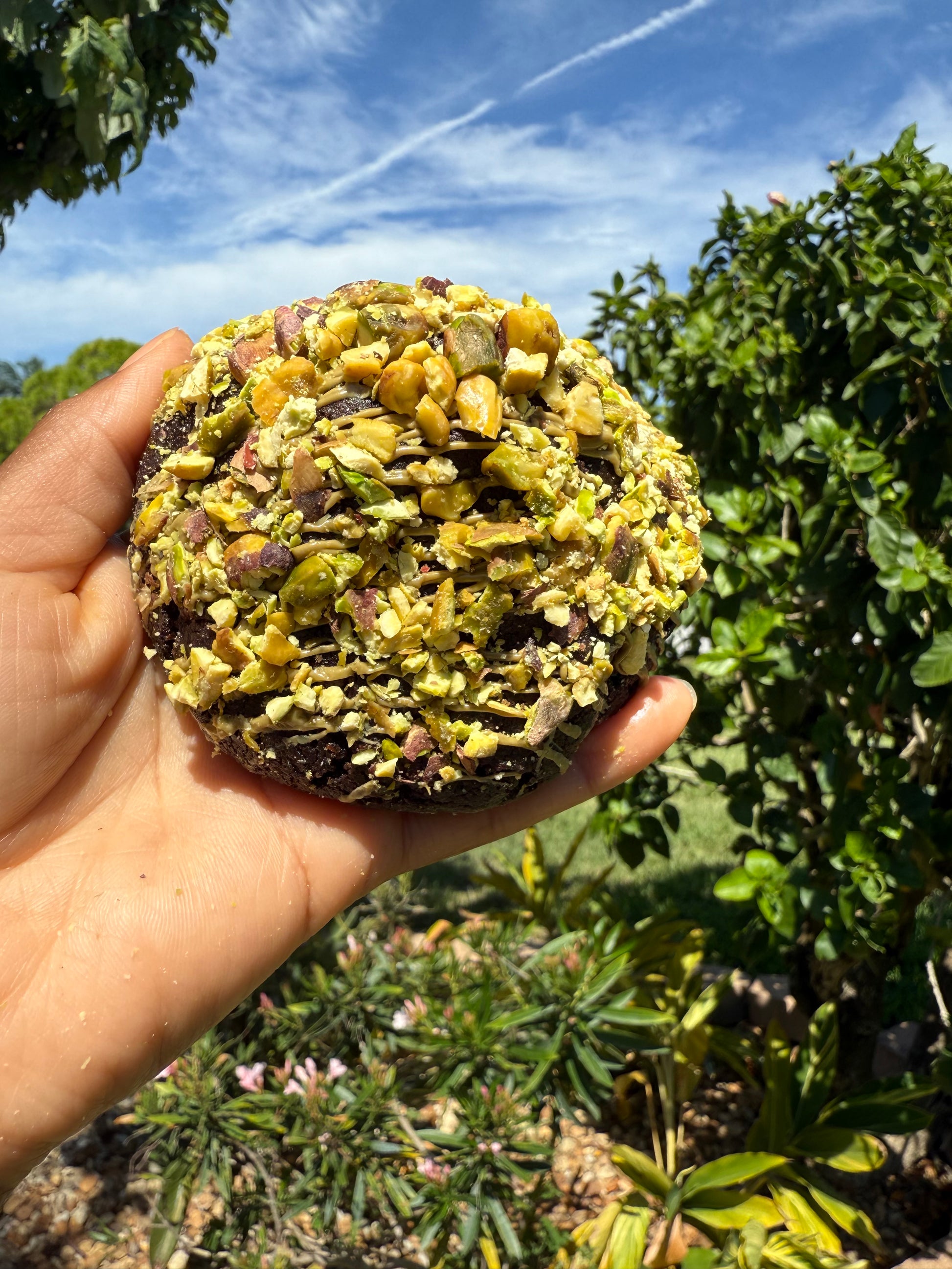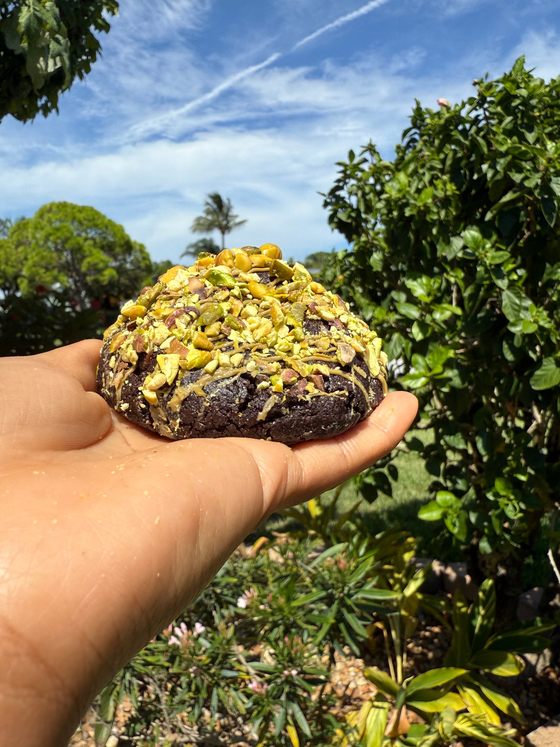 A rich, fudgy brownie cookie stuffed with luscious Dubai pistachio filling. Each bite is soft and melty with a surprise crunchy pistachio center — a decadent fusion of chocolate and nutty indulgence.